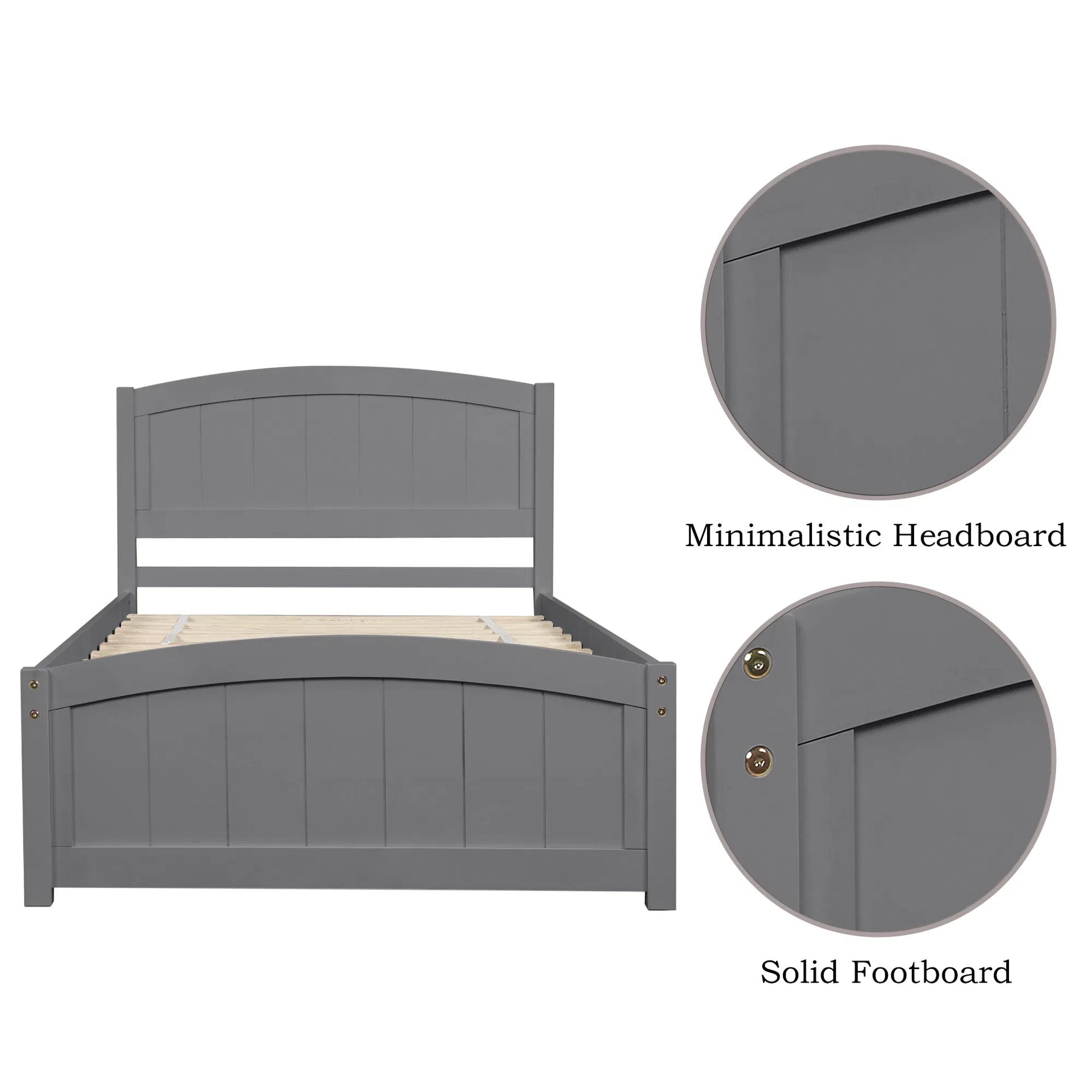 This wood platform bed with a headboard and footboard offers a sleek, minimalist design that complements a variety of décor styles, making it easy to enhance your space. Featuring sturdy wood slats for reliable support, this bed frame combines both style and functionality. The elegant gray finish adds a sophisticated touch, making it a perfect addition to any bedroom. Don’t miss the opportunity to bring this timeless piece home today!