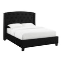 1-Piece Contemporary Upholstered Fabric Bed with Button Tufting, Nailhead Trim, and Demi-Wings in Black Finish, Wooden Bedroom Furniture