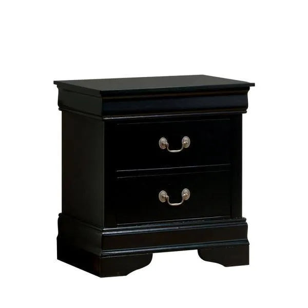 1-Piece Nightstand – Black Louis Philippe Design, Solid Wood, English Dovetail Construction, Antique Nickel Hanging Pulls
