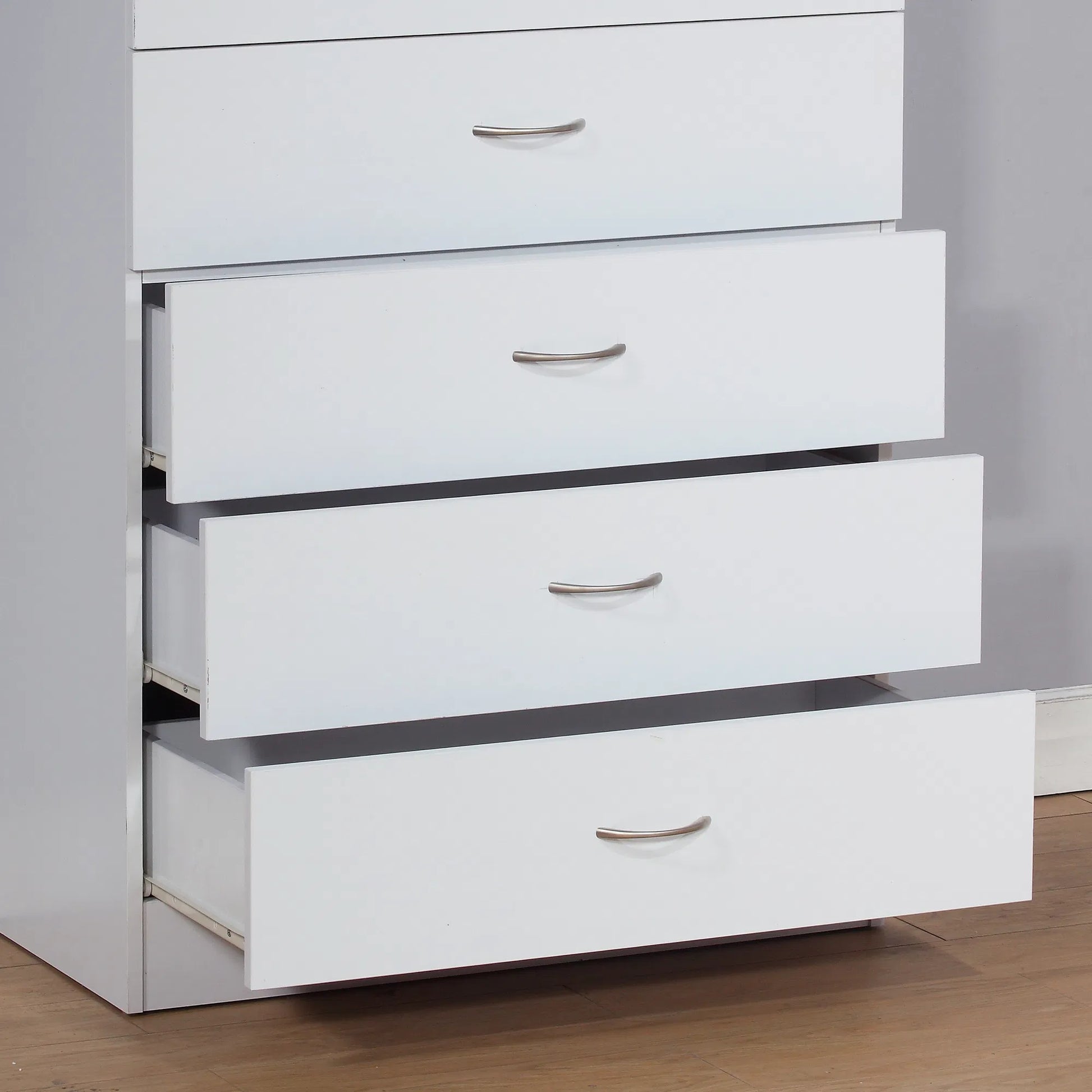 Five-Drawer Chest with Metal Handles, Locking Top Drawer, and Metal Glide Rails – White Melamine Finish