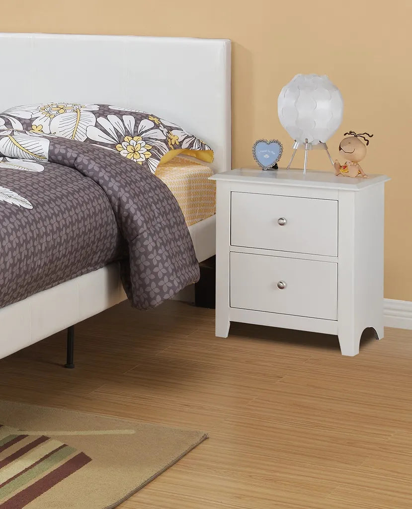 White Wooden Nightstand with 2 Drawers – Bedside Table for Bedroom