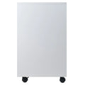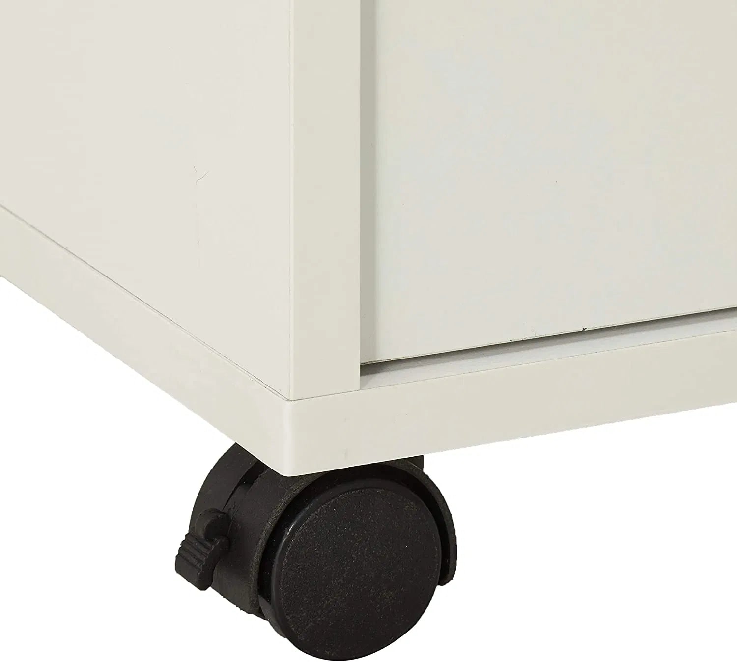 The spacious side cabinet (13"W x 14.76"D x 22.83"H) includes an adjustable shelf, perfect for organizing linens, books, or other larger items. Designed for mobility, the unit sits on four casters, with two locking wheels for stability when needed.
