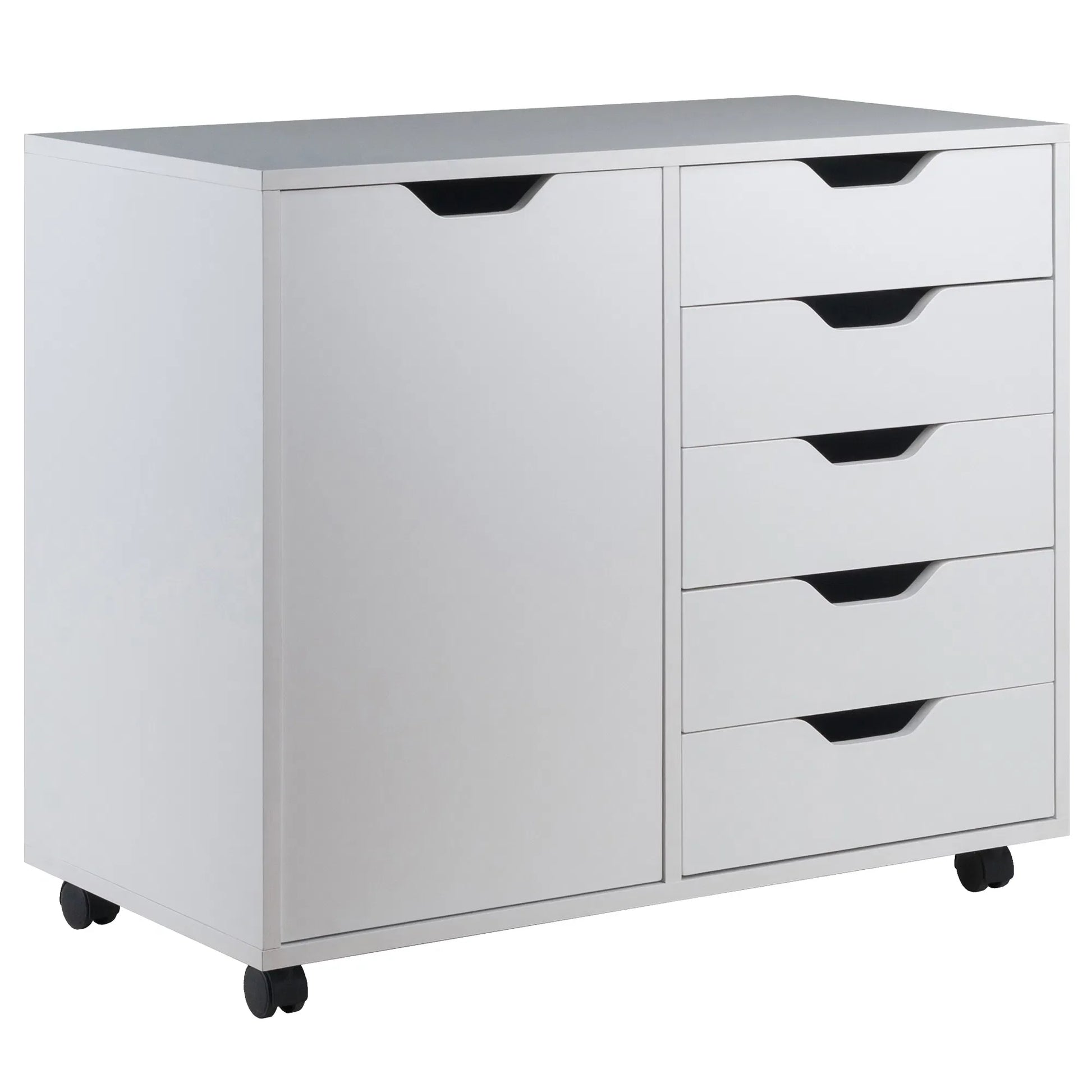 The Winsome Wood Halifax 5-Drawer & Side Cabinet is a versatile storage solution designed to keep your space organized and clutter-free. With its clean and simple design, this unit is a functional addition to any room, including bedrooms, craft rooms, dorms, kitchens, or home offices.