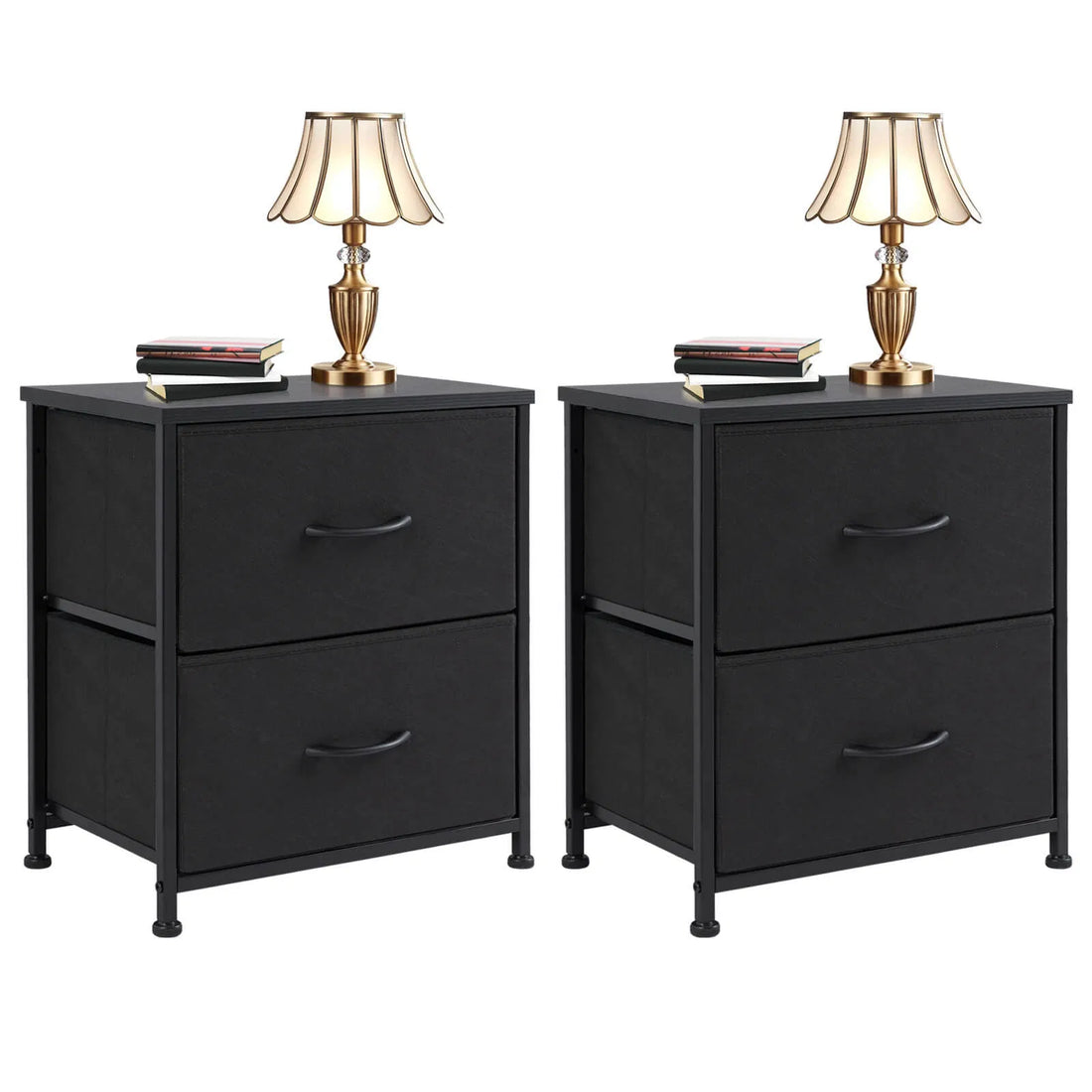 Black Drawer Dresser – Chest of Drawers with Metal Frame & Wood Top, 2BC