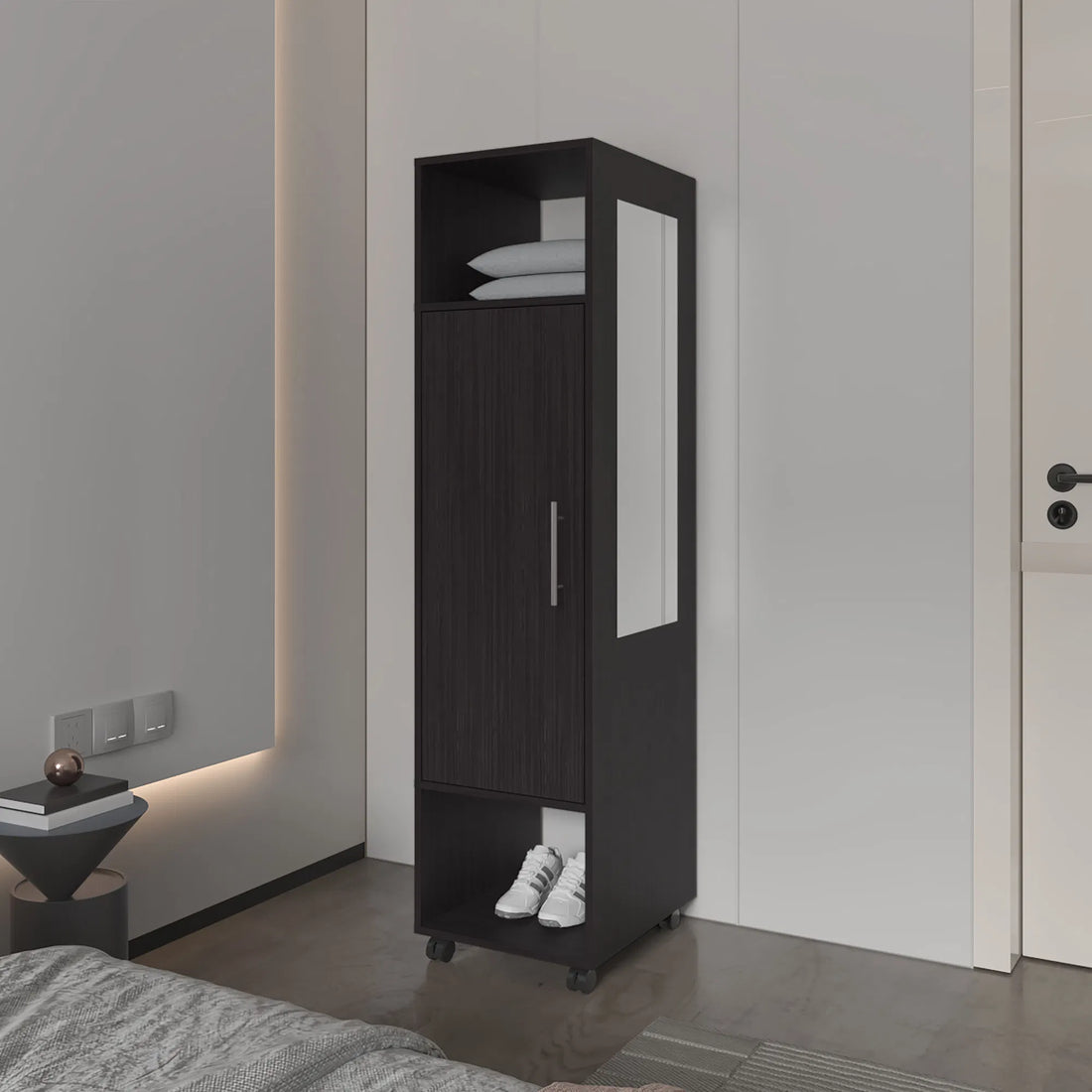 Summit Melamine Wardrobe with Mirror, Door, and Open Storage