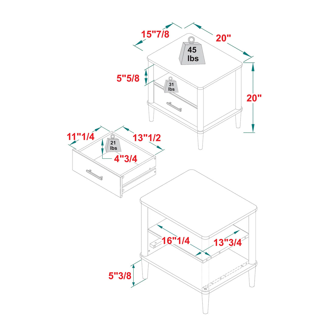 Mid-Century Modern Solid Wood Nightstand with 1 Drawer – Walnut