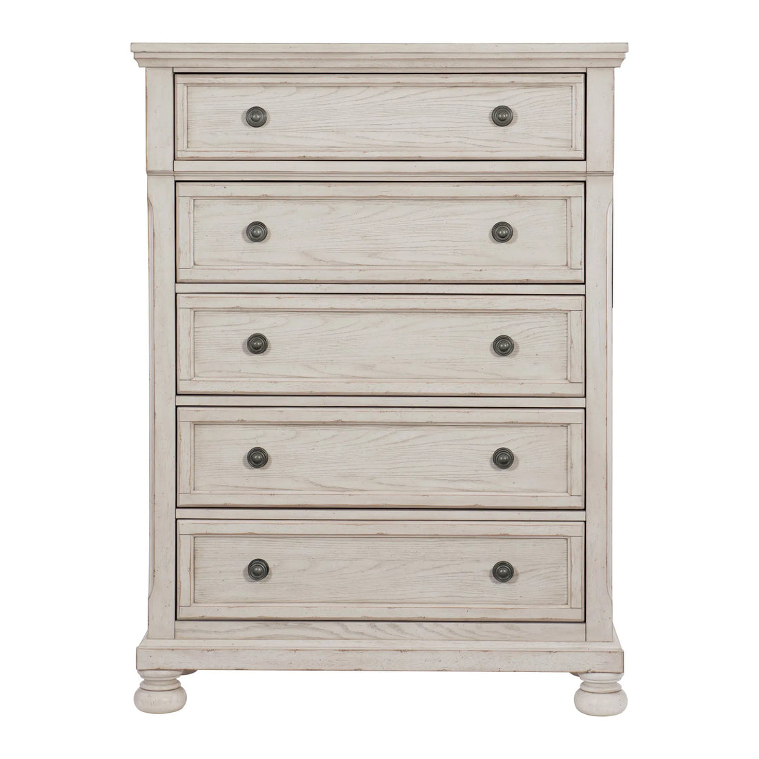 Wire-Brushed White 1pc Chest of Drawers with Ball Bearing Glides - Transitional Bedroom Furniture