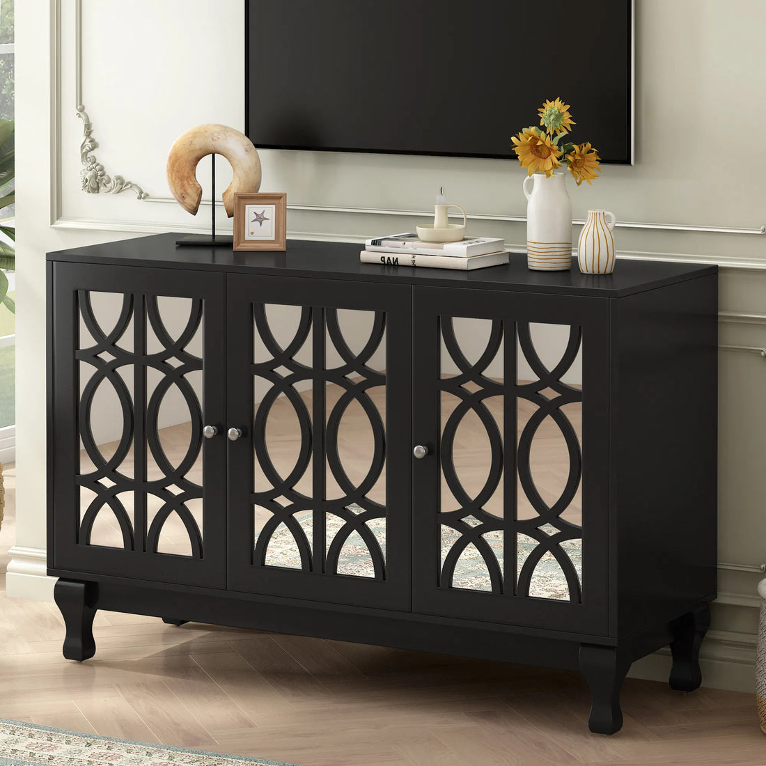 Modern Mirrored TV Stand for TVs up to 55" – Solid Wood Legs, Metal Handles, & 3 Adjustable Shelves