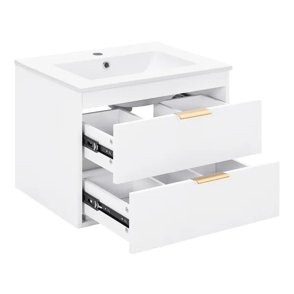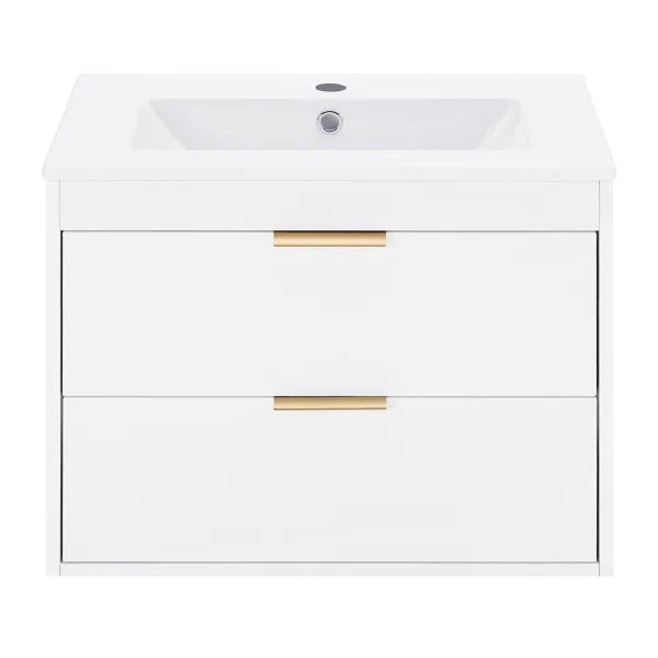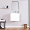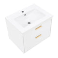 24" Wall-Mounted Floating Bathroom Vanity with White Ceramic Sink & Drawer Storage