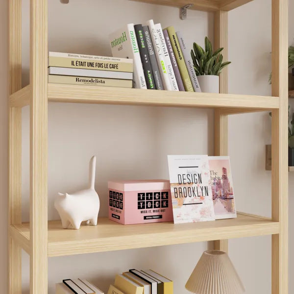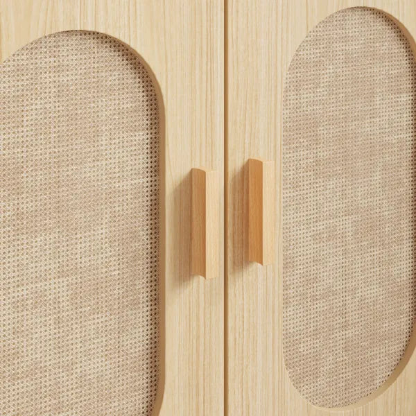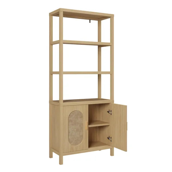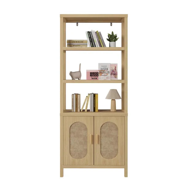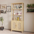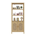 FCH 4-Layer Display Cabinet with Double Doors – Triamcinol Board & Rattan Surface, 78×35.5×180cm, Natural Wood Finish