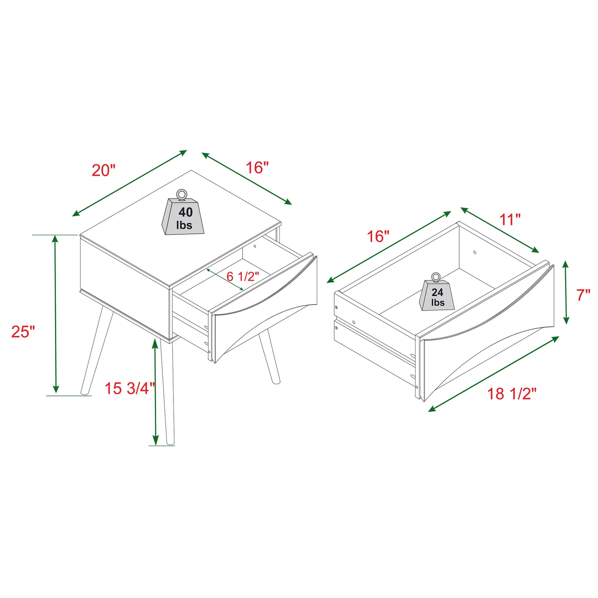 Mid-Century Modern Solid Wood Nightstand with 1 Drawer – Walnut