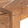 Crafted from durable teak wood, this TV stand features pieces in various shapes, utilizing the natural texture and form of the wood to create a unique design. Its distinctive erosion finish adds a rustic charm to any space. The 3D-shaped industrial legs offer ample room for comfort and functionality.