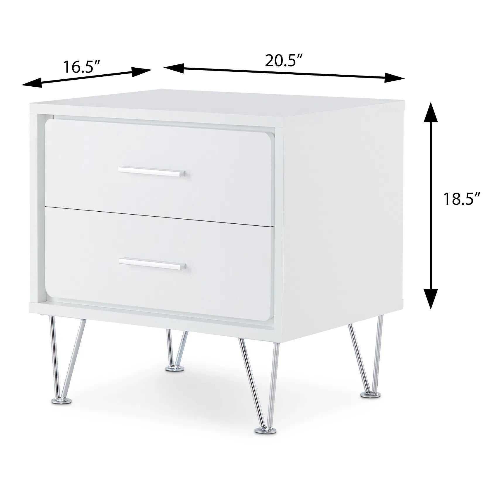 White 2-Drawer Accent Table with Modern Hairpin Legs