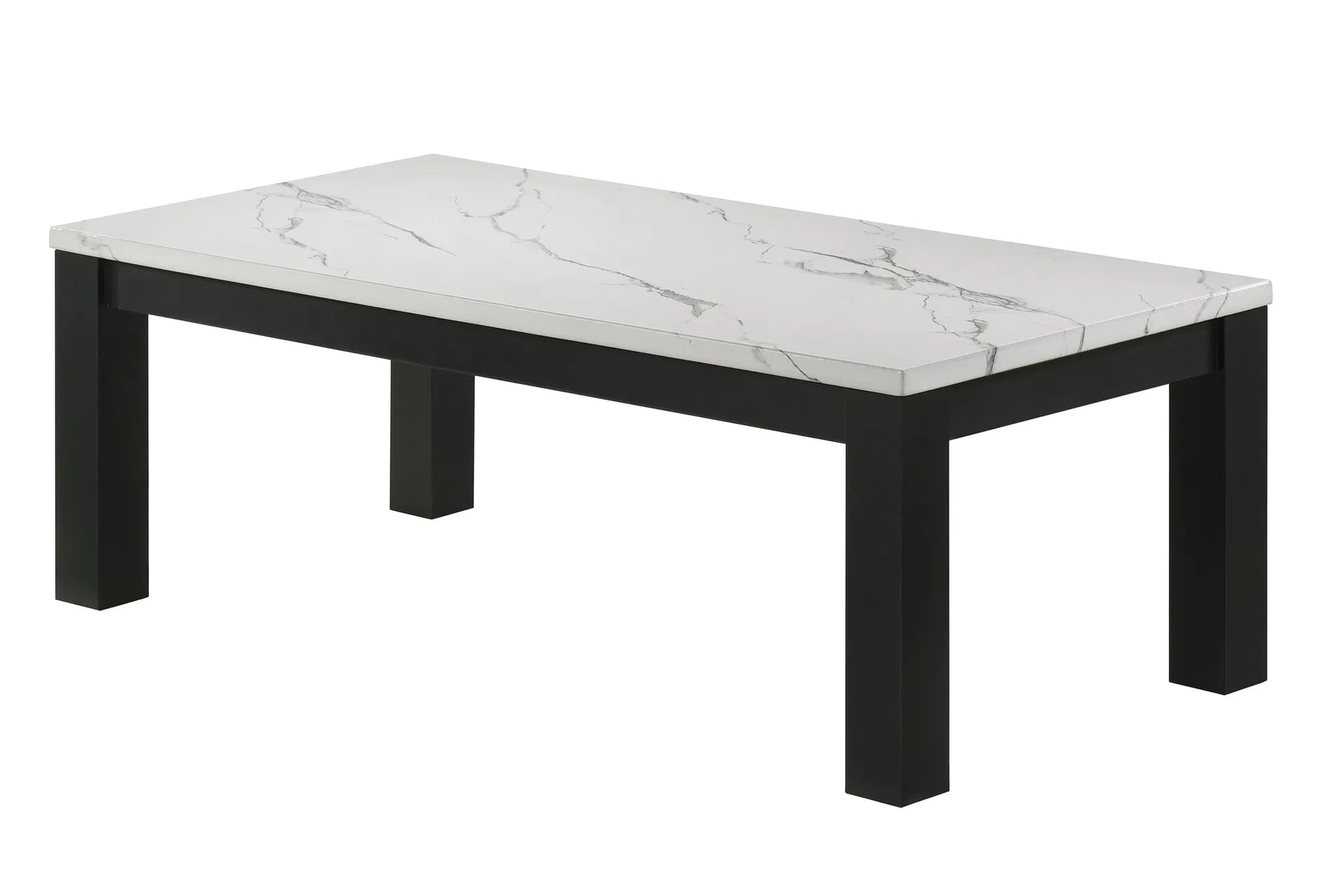 Elevate your living area with this 3-Piece Faux Marble White Cocktail Set. This chic and modern collection features a stylish faux marble finish, consisting of a rectangular coffee table and two matching square side tables, making it ideal for any living space.