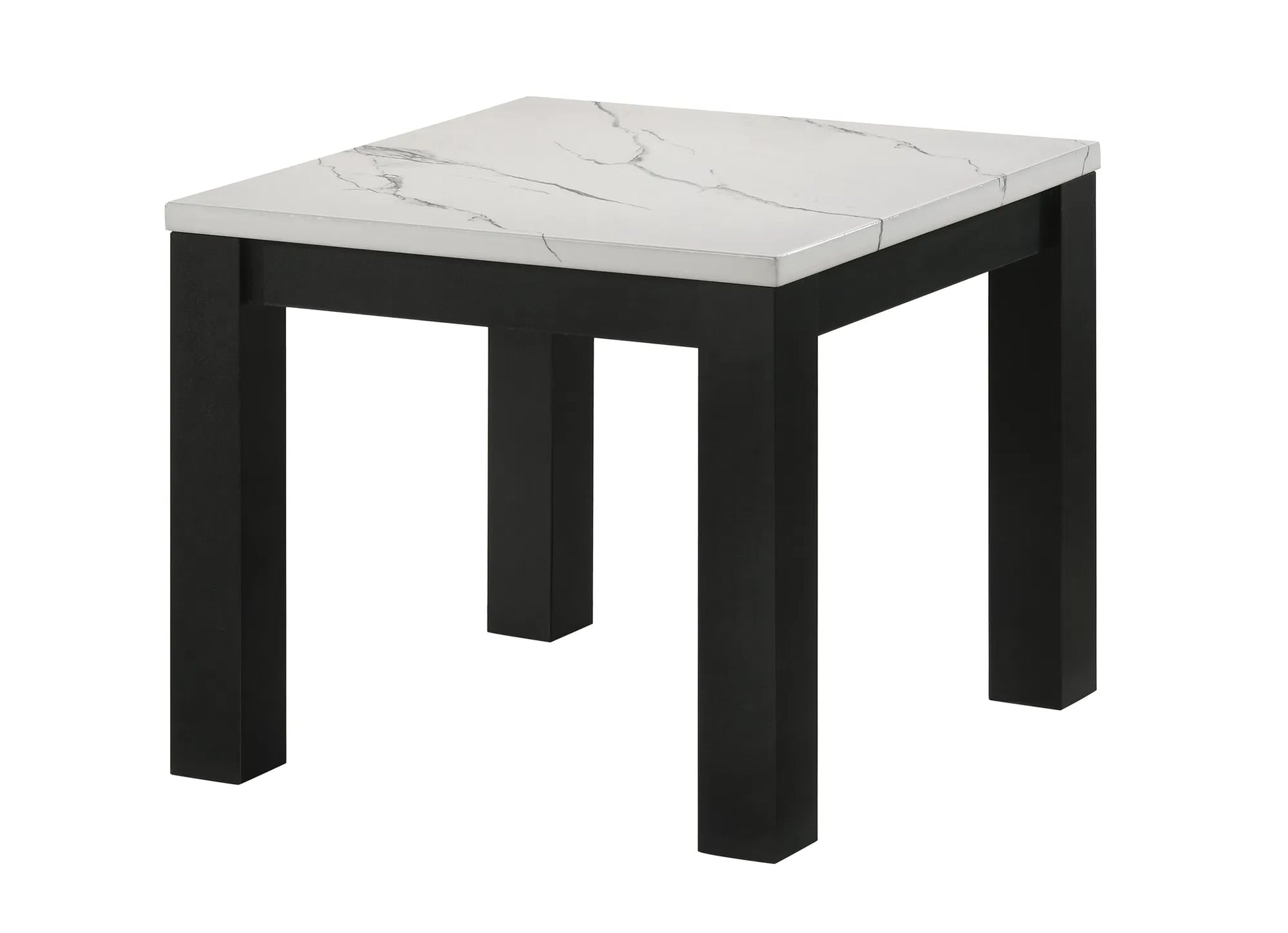 White and Black 3-Piece Living Room Table Set with Faux Marble Top - Cocktail Table and Two Matching End Tables