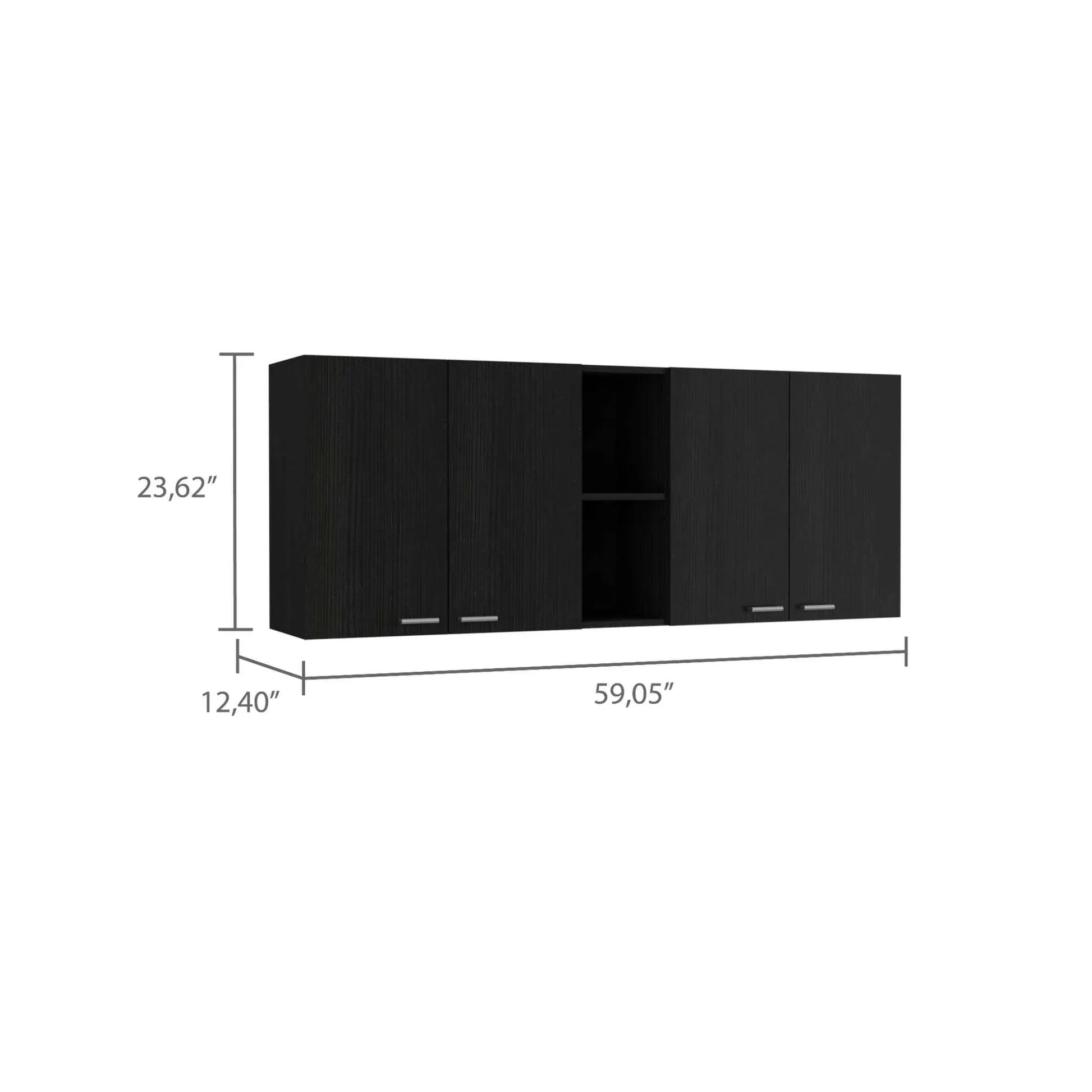 Winslow 150" Wall Cabinet – Four Doors, Two Divisions, Two Shelves