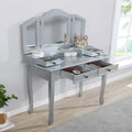 Silver Wooden Vanity Makeup Table and Stool Set