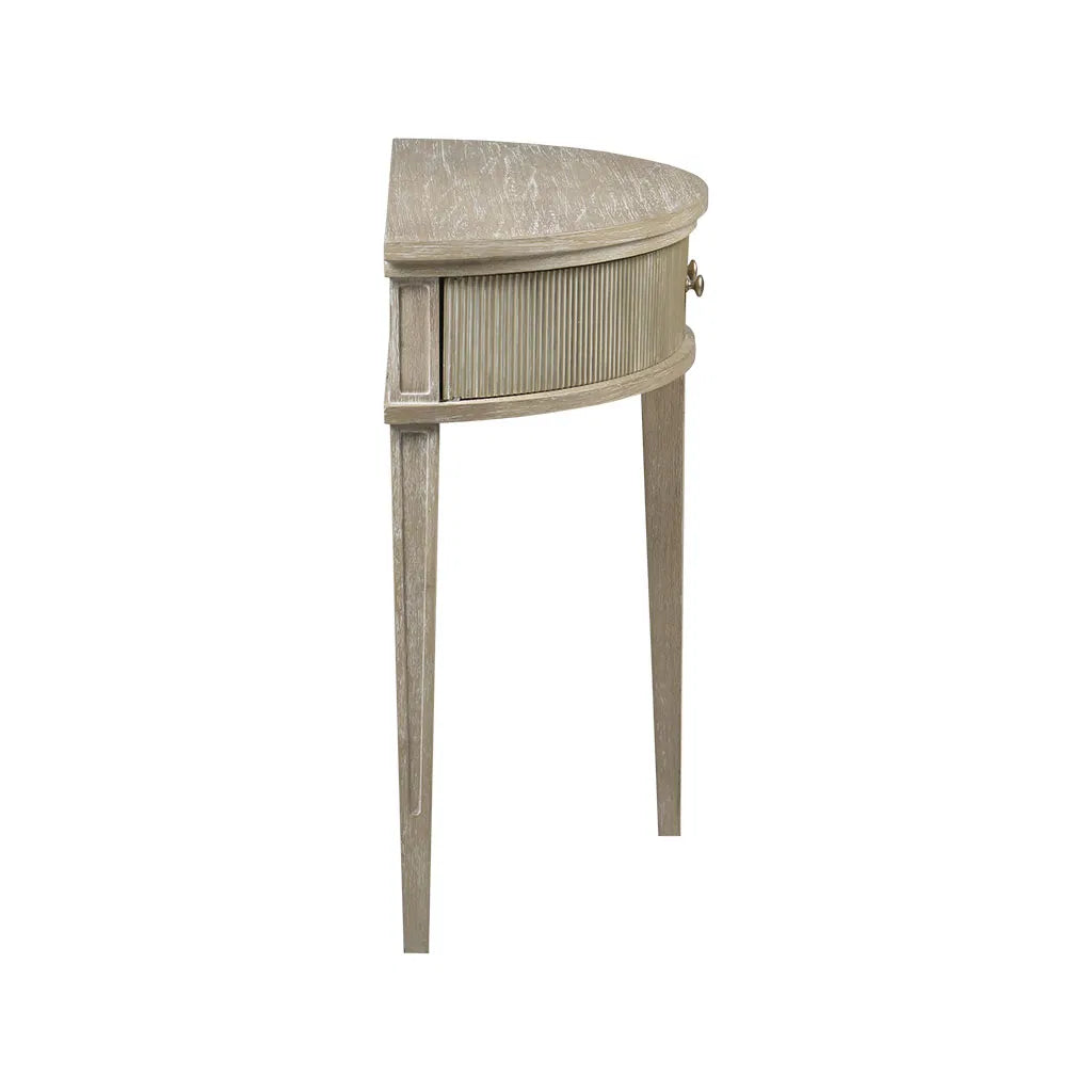 - Demilune shape, designed to save space and fit seamlessly into any entryway or living area.