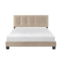 1pc Queen Platform Bed with Light Brown Velvet Upholstery, Adjustable Height Button-Tufted Headboard, Solid Wood Frame, Bedroom Furniture