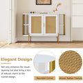 - High-Quality Material: Crafted from premium particleboard, It ensures sturdiness. The two doors feature finely crafted rattan, guaranteeing long-lasting use. The gold handles, legs, and side supports are all power coating, resulting in a smooth surface that not only adds a touch of luxury but also enhances durability and stability. The interior includes an adjustable shelf to meet storage need. Tabletop weight capacity: 331 lbs; Shelves weight capacity: 110 lbs.