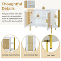 - Thoughtful Details: On both sides of the cabinet are particularly notable, there are elegantly curved open shelves that perfect for displaying smaller items or keeping everyday essentials within easy reach. The gold vertical bars that support the shelves add a touch of sophistication and reinforce the luxurious feel. The legs are equipped with foot pads to protect floors from scratches and provide stability. Curved shelves weight capacity: 47 lbs.