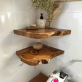 Rustic Walnut Live Edge Corner Shelf for Home Decor