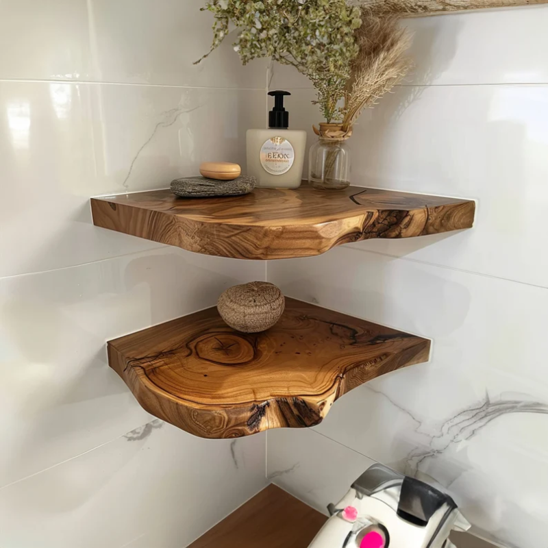 Add a touch of woodland enchantment to any room with our Floating Corner Shelves, which seem to hover effortlessly in place. Perfectly suited for bohemian to rustic aesthetics, these shelves are ideal for showcasing books, plants, or decorative pieces.